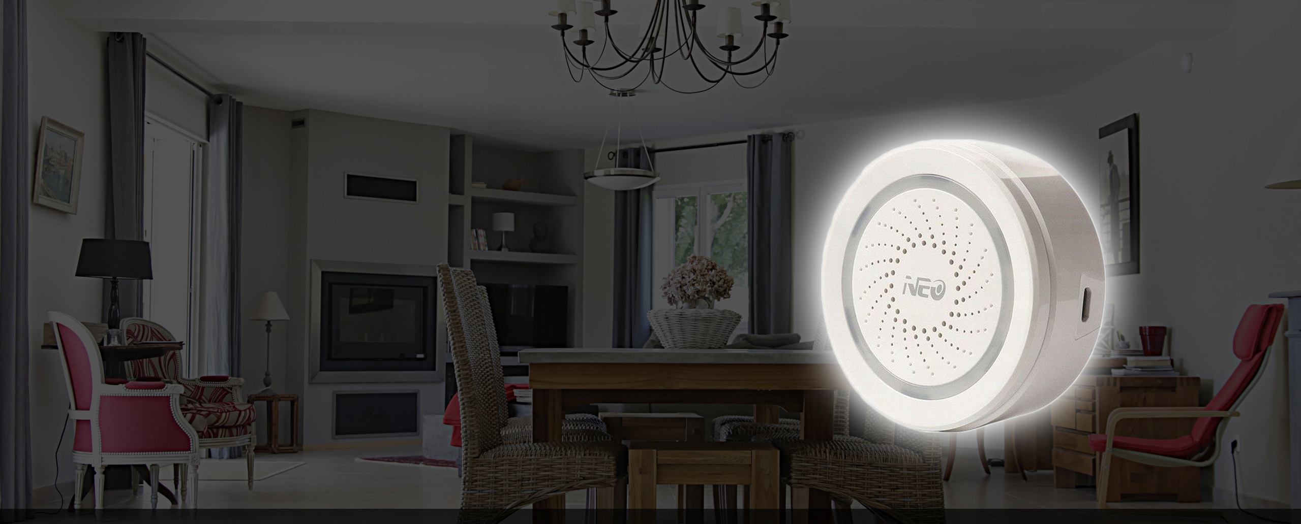 Syrena wydaje dźwięk o głośności do 100 dB. Dzięki bezprzewodowemu podłączeniu idealnie nadaje się do każdego mieszkania, domu, biura.