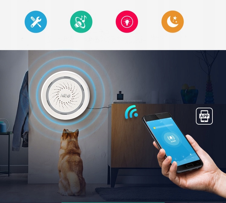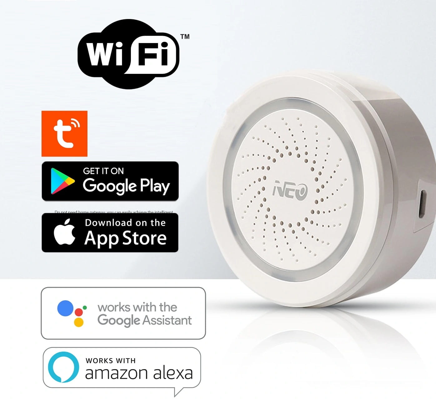 Oryginalna syrena alarmowa WiFi marki Neo - działa z Google Home Alexa Tuya Smart Life