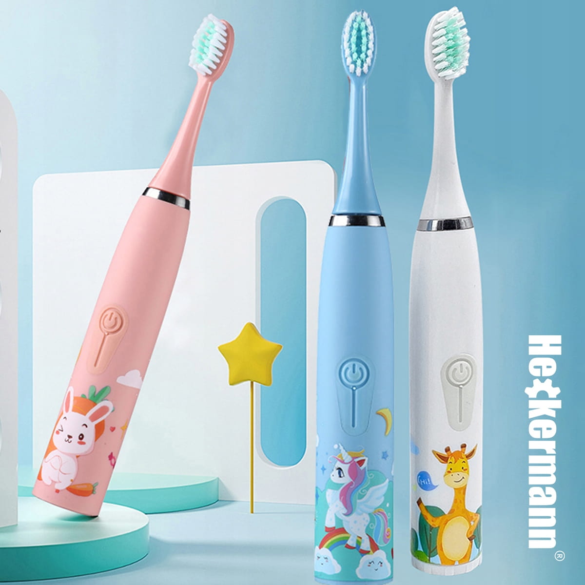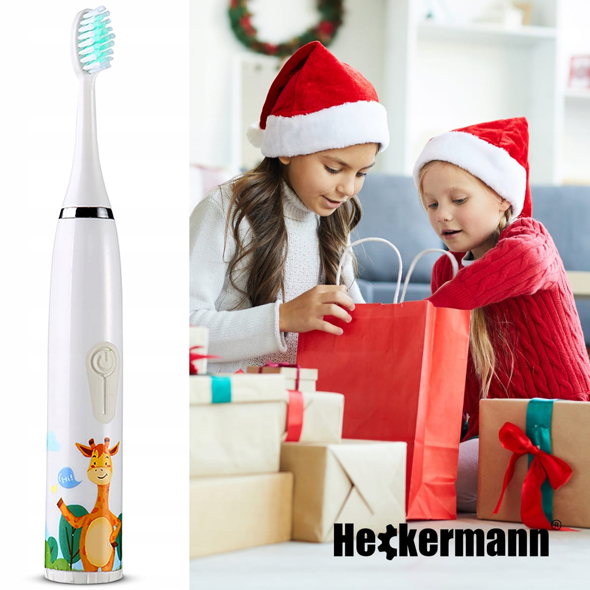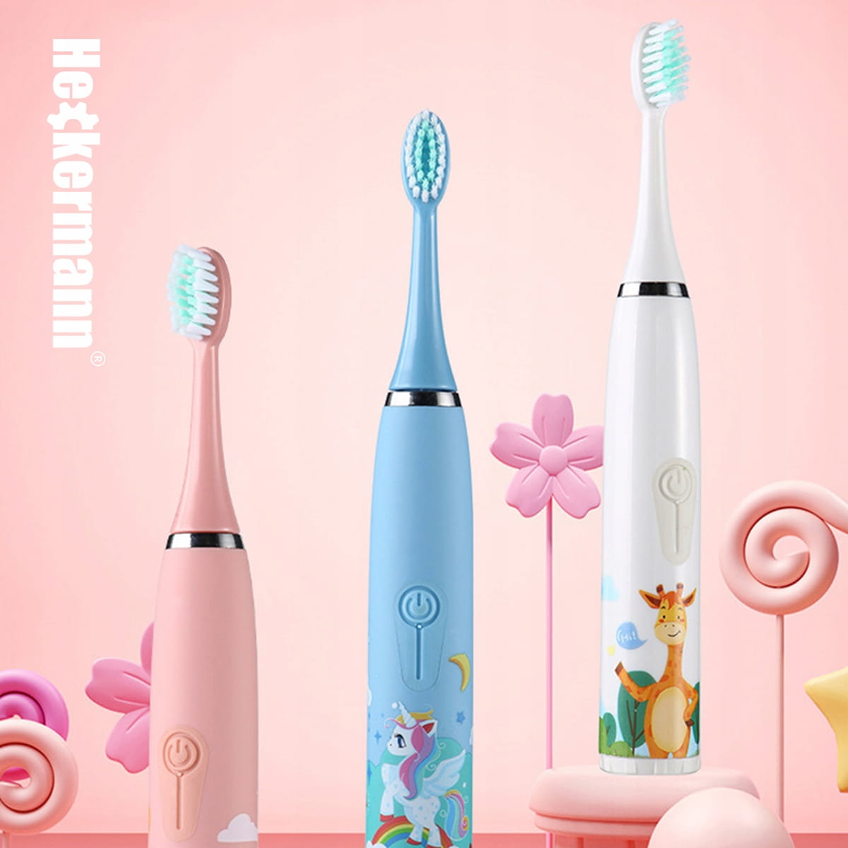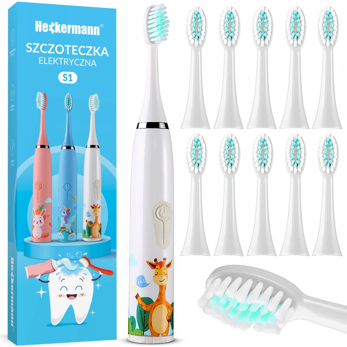 Szczoteczka do zębów elektryczna automatyczna żyrafa dla dzieci 12 końcówek Heckermann biała