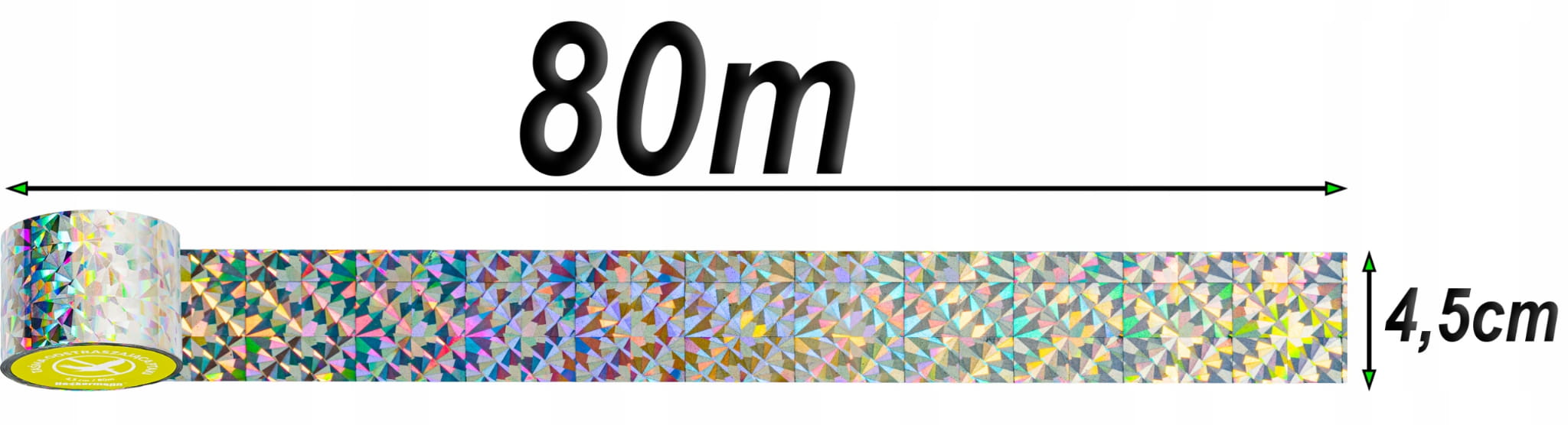Rolka wysokiej jakości taśmy przeciw ptakom posiada aż 80 metrów długości i szerokość równą 4,5 cm.