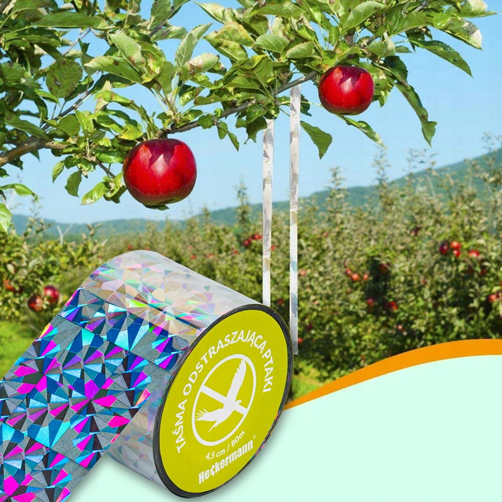 Jej odblaskowa powierzchnia odbija promienie słoneczne, co skutecznie płoszy gołębie, szpaki i inne typowe ptaki, które na działkach uprawnych szukają łatwego do zdobycia pożywienia. Oprócz efektów wizualnych, nasza taśma emituje również dźwięki.