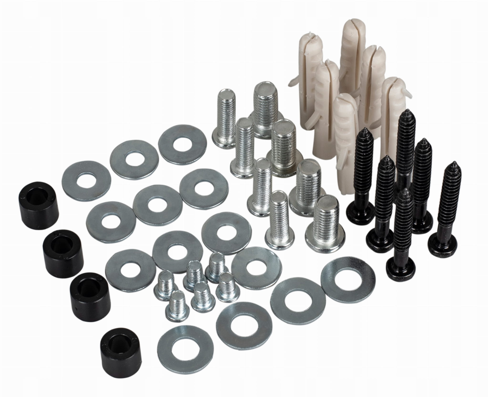 W zestawie z uchwytem otrzymujesz uniwersalne akcesoria montażowe, które powinny być odpowiednie do większości montowanych telewizorów. Jeśli zdarzy się sytuacja że jakieś śrubki okażą się za krótkie, należy we własnym zakresie je dokupić w pobliskim sklepie z narzędziami.