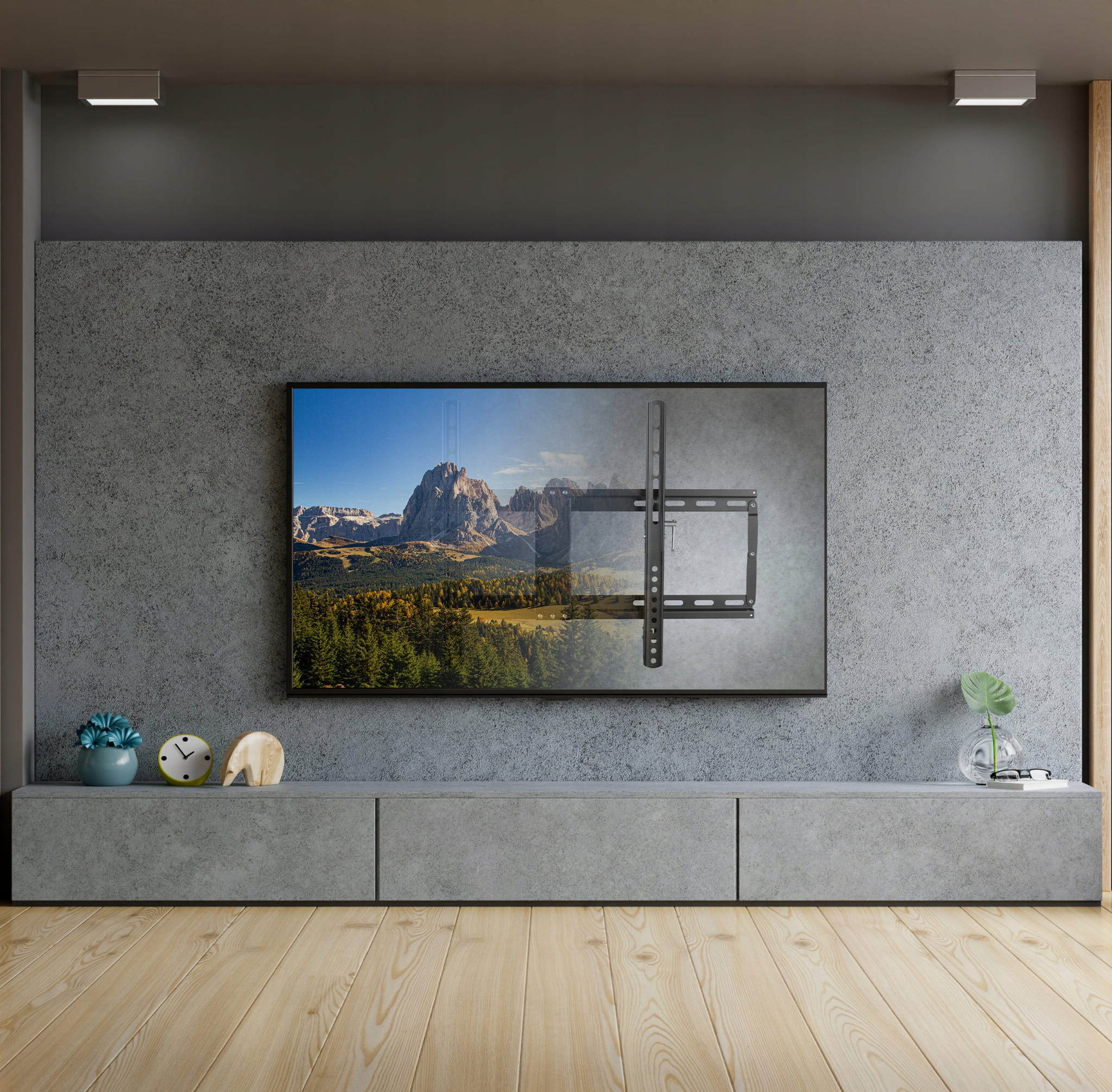 Dzięki swojej unikalnej konstrukcji, wieszak odstaje od ściany tylko 35 mm, dzięki temu uchwyt jest praktycznie niewidoczny po zamontowaniu telewizora.