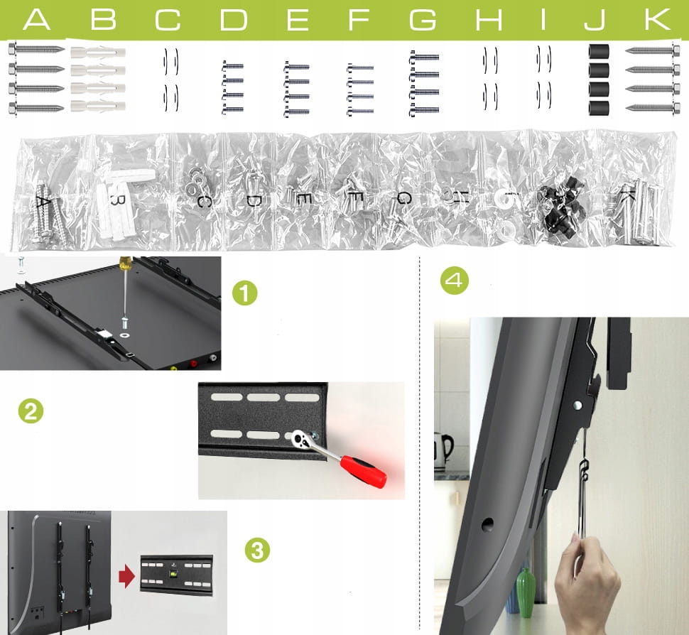 - Kompletny gotowy zestaw do powieszenia telewizorów: LCD, LED, OLED
