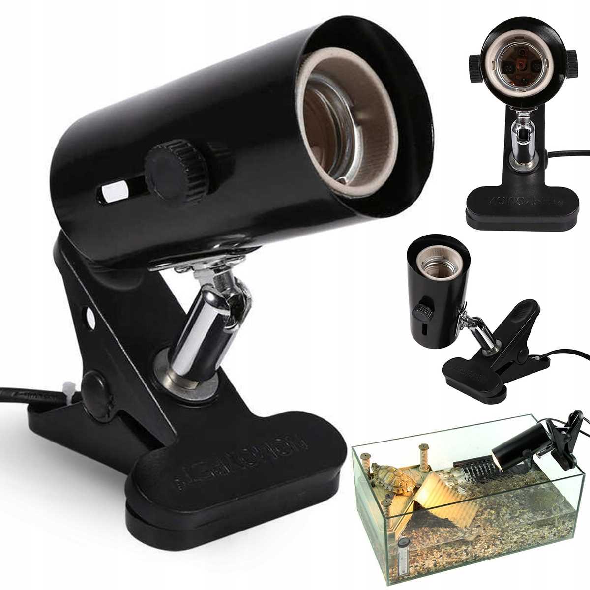 Lampa metalowa uchwyt mocny na żarówkę E27 do zamocowania w terrarium do 200 W