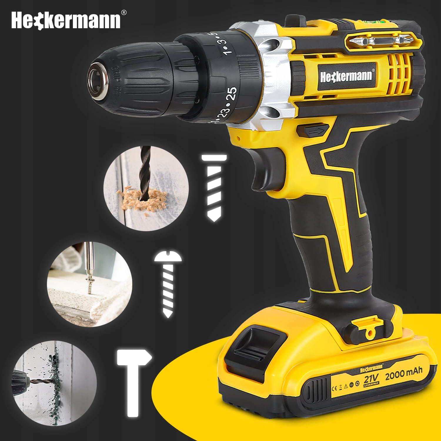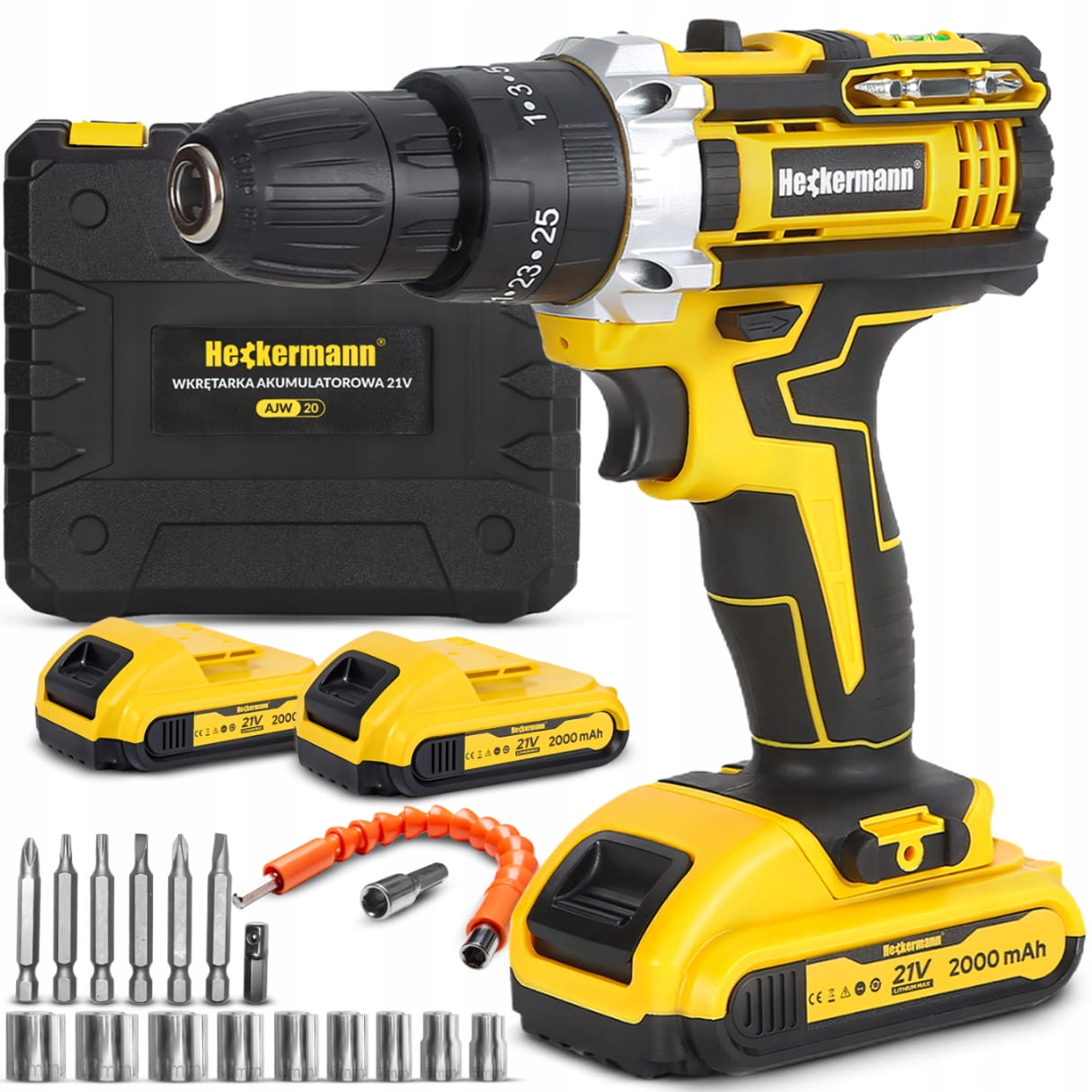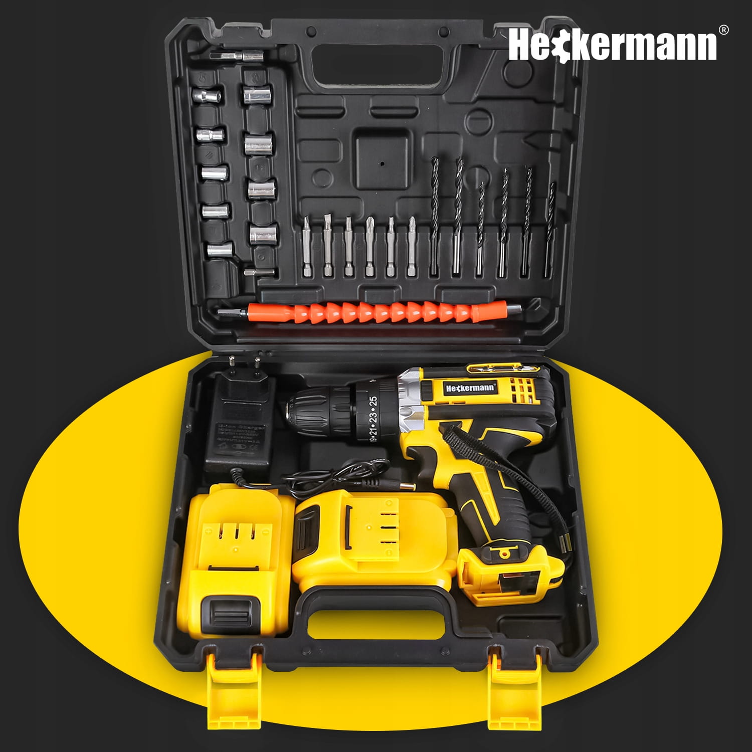 UDAROWA WIERTARKO WKRĘTARKA AKUMULATOROWA 2x AKUMULATOR 21V + WALIZKA WĄŻ Marka Heckermann