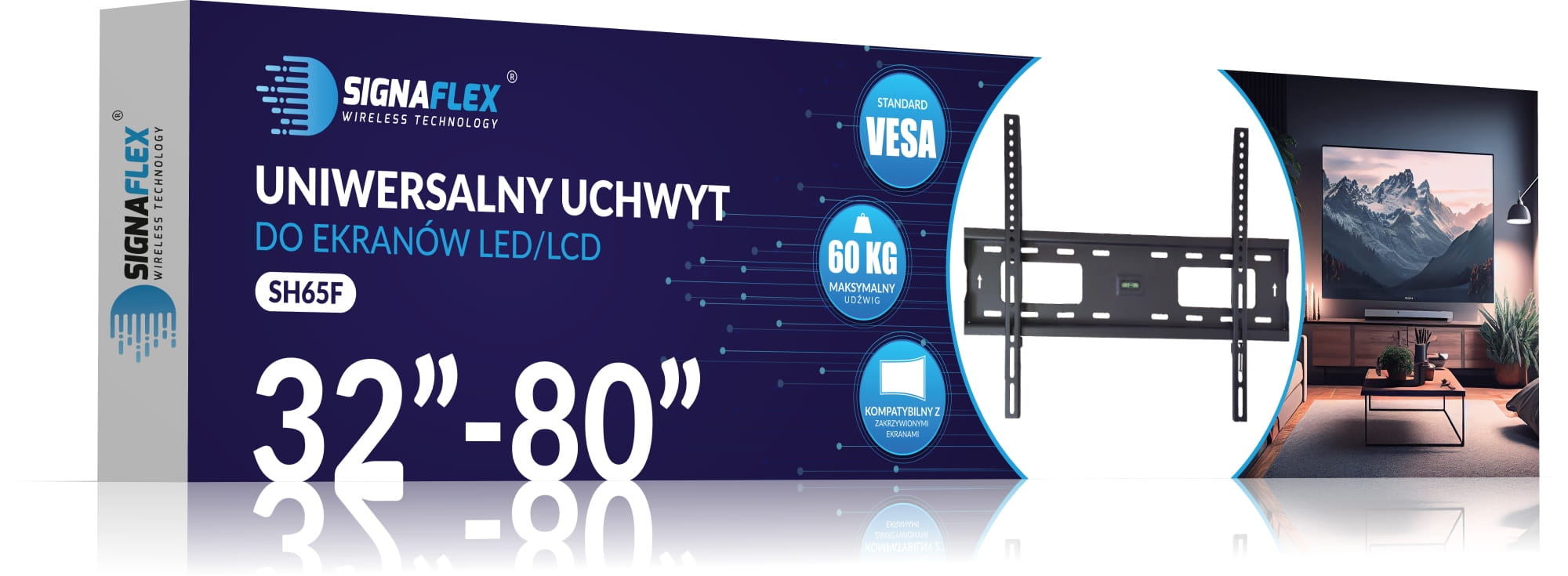 UNIWERSALNY MOCNY UCHWYT DO TELEWIZORA WIESZAK TV MONITORA 32-80" VESA Kod producenta Signaflex VESA SH65F