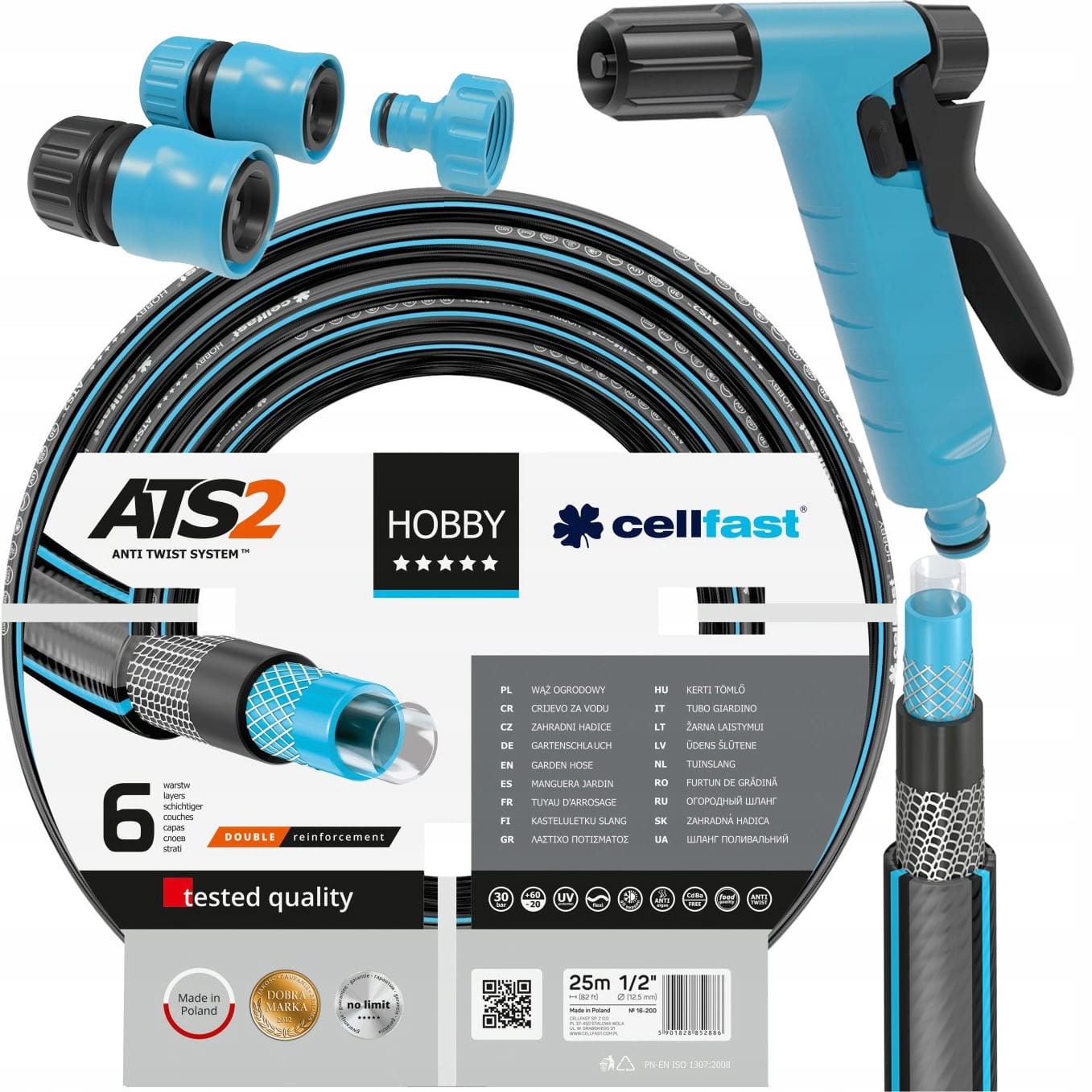 Zestaw wąż ogrodowy 6 warstw mocny 1/2 25 m 32 bar UV pistolet 3x złączka Cellfast