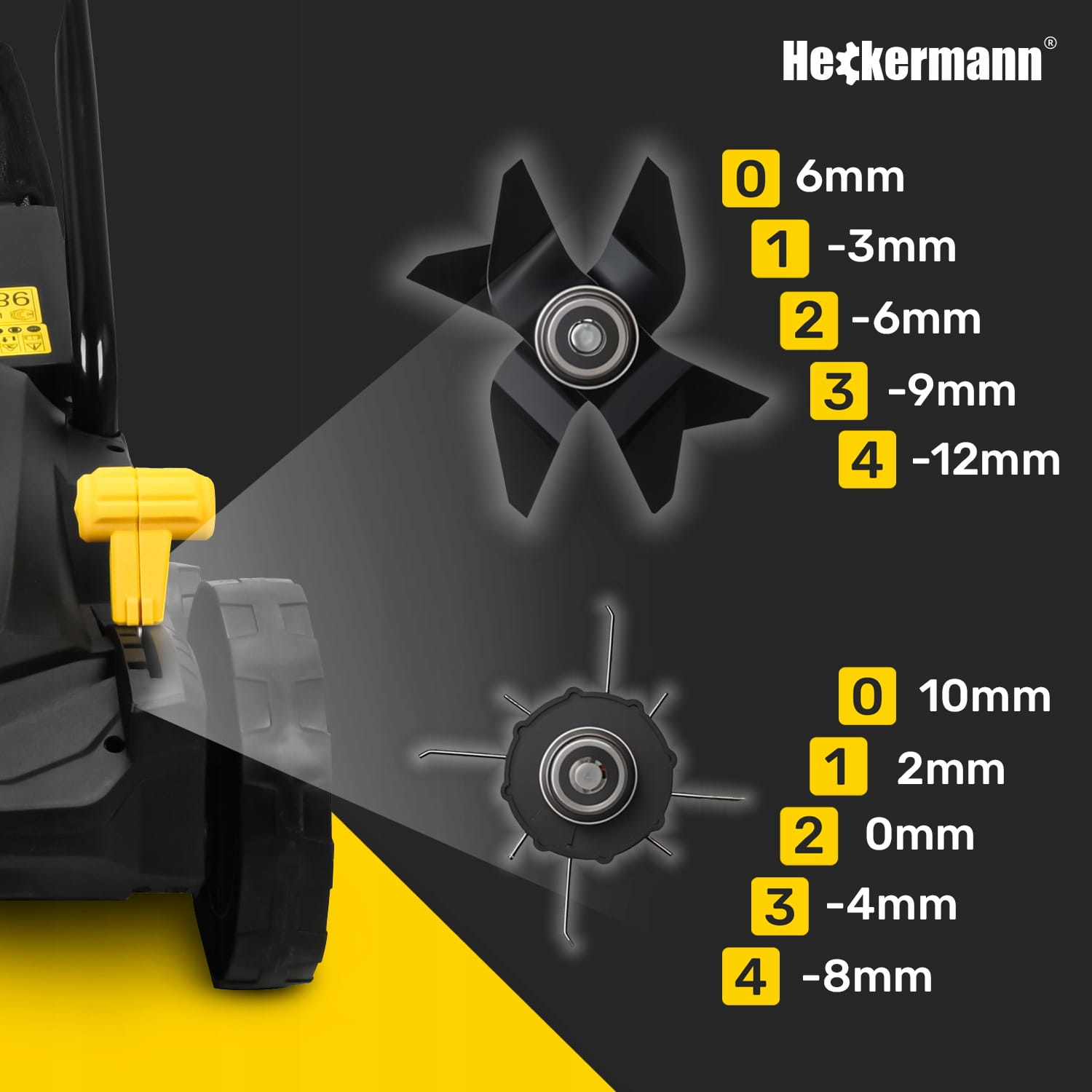 - Regulowana głębokość pracy (-12 do +4 mm) – dostosuj narzędzie do potrzeb trawnika.