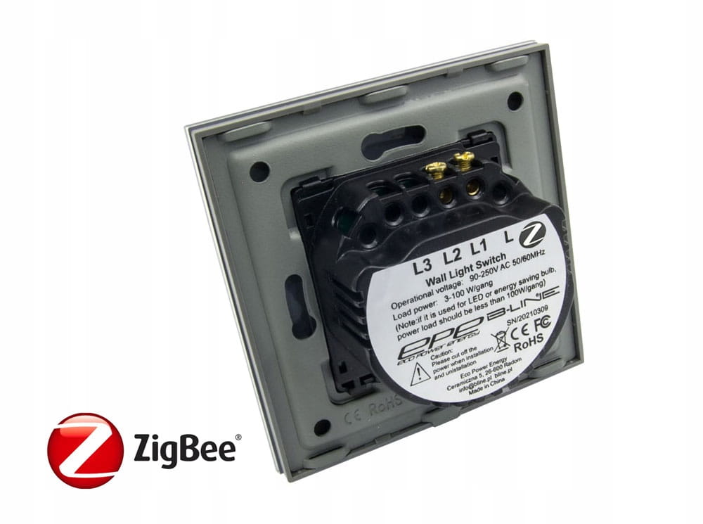 Włącznik posiada wbudowany moduł ZigBee, co umożliwia sterowanie poprzez telefon komórkowy lub tablet po zainstalowaniu aplikacji Tuya lub Smart Life. Aplikacja jest w języku polskim. Możliwość sterowania z dowolnego miejsca.