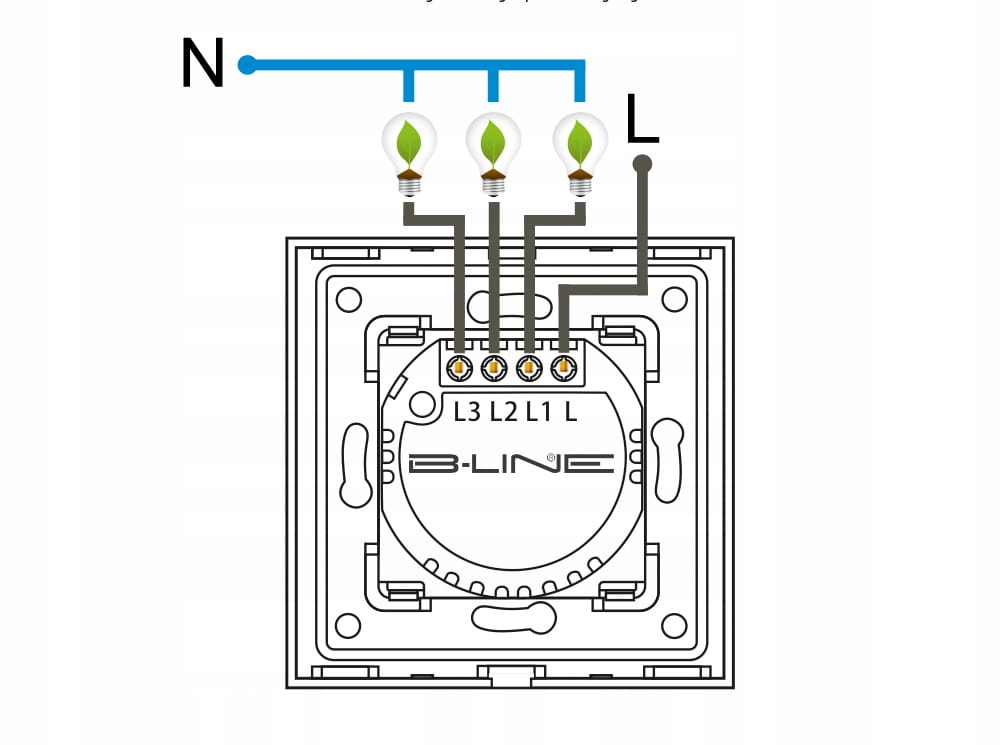 Efektowny włącznik trójobwodowy, dotykowy z podświetleniem LED. Włącznik montowany jest w standardowej puszcze o średnicy 60 mm. Instrukcja montażu dołączona do towaru.