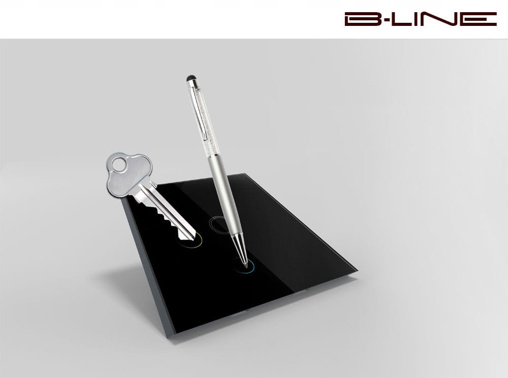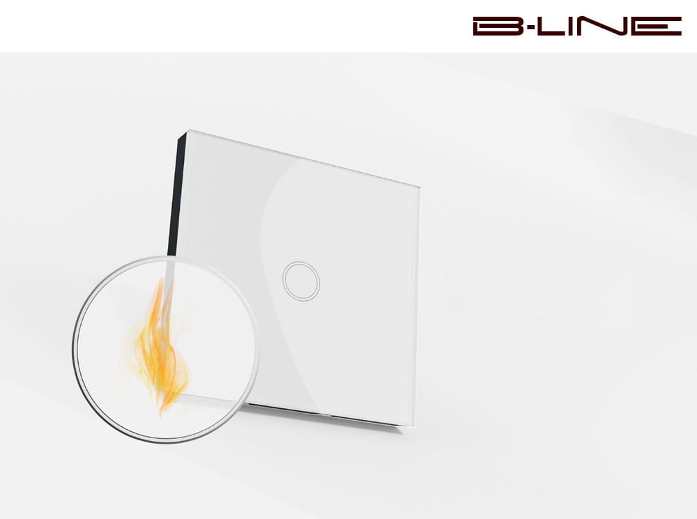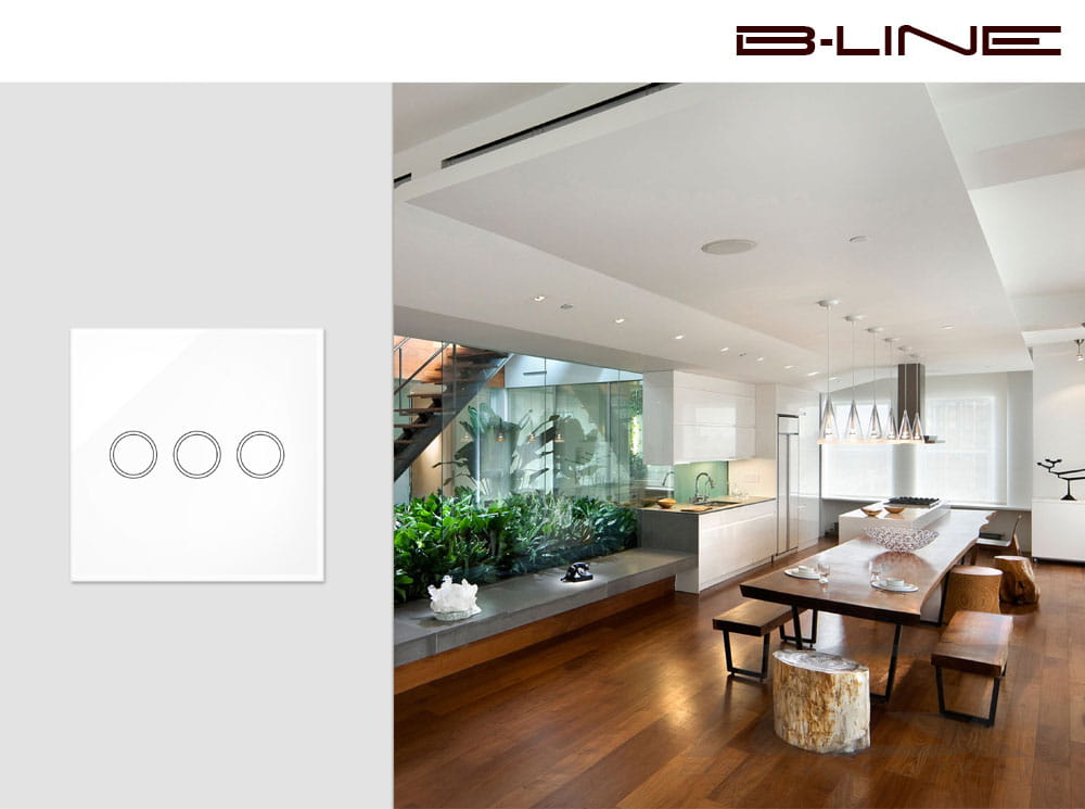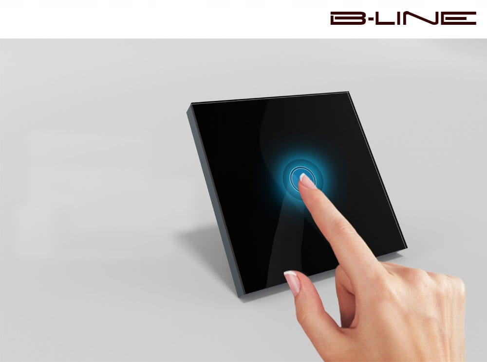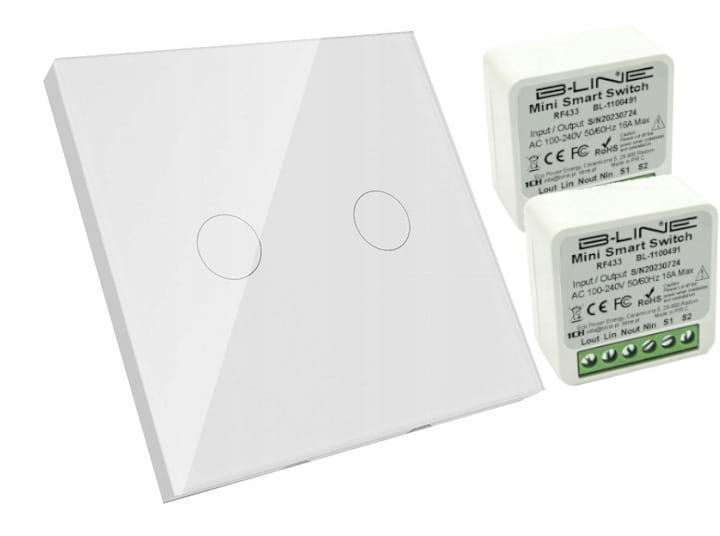 Efektowny włącznik dotykowy z podświetleniem LED ze szklanym panelem w kolorze białym plus dwa odbiorniki bezprzewodowy B-Line.