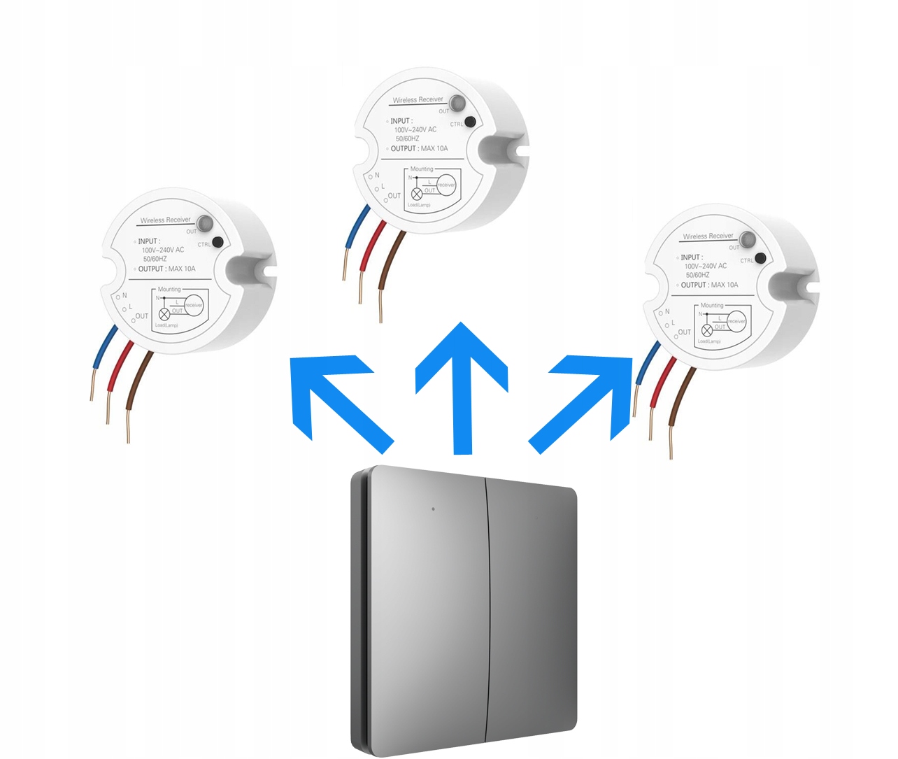 Włącznik Linptech K9W2 grey, jak i pozostałe urządzenia z rodziny Linptech posiadają możliwość sparowania jednego nadajnika (przycisku) do dowolnej ilości odbiorników. Np. naciskając jeden przycisk przy drzwiach wejściowych - jeden odbiornik może być zainstalowany na parterze, a drugi może być wpięty na piętrze czy np. w piwnicy - jednym naciśnięciem wzbudzamy dwa odbiorniki.