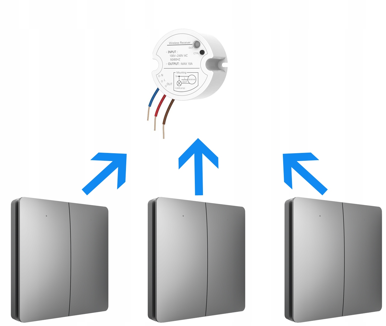 Do jednego odbiornika możemy sparować do 10 nadajników. Dzięki temu możemy włączać lub wyłączać urządzenie elektryczne z różnych miejsc.