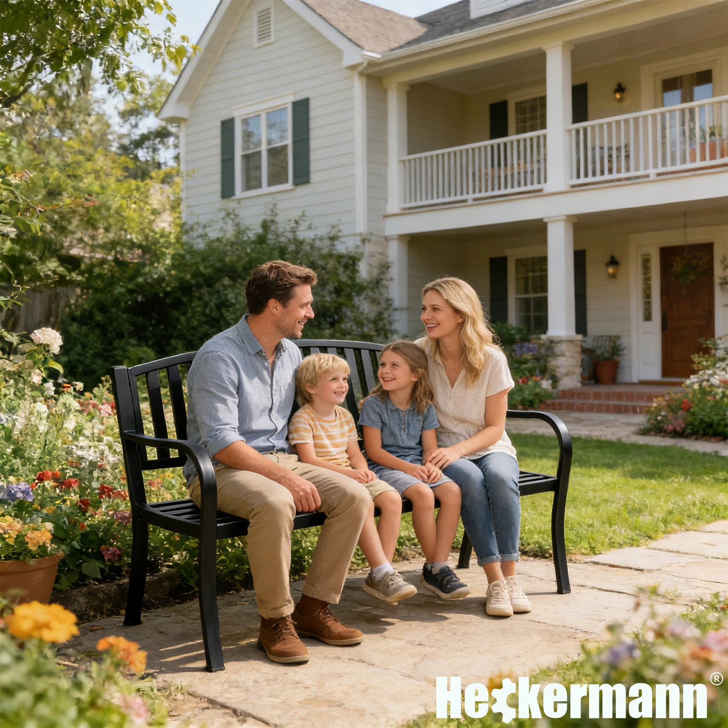 Czarna kolorystyka oraz klasyczna forma sprawiają, że ławka ogrodowa Heckermann doskonale komponuje się z: