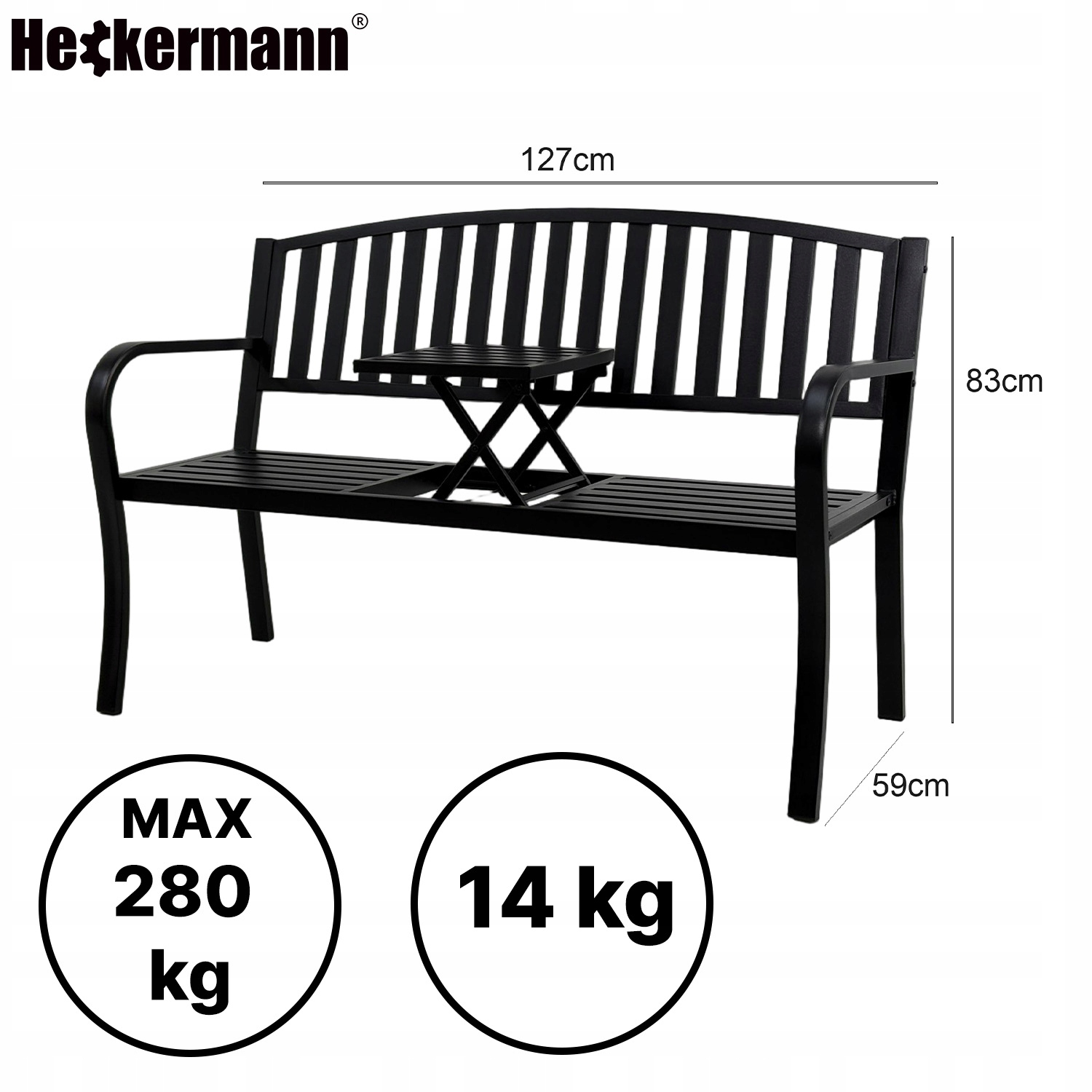 Z danych widocznych na zdjęciach jasno wynika, że ławka Heckermann to konstrukcja solidna i stabilna: